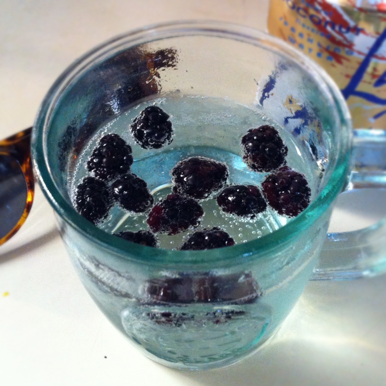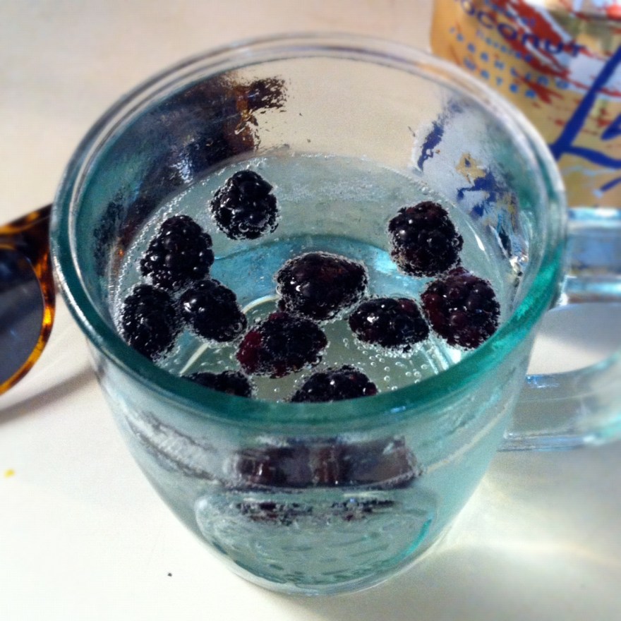 Muddled berries with coconut sparkling water and a few drops of stevia, my new summer go to drink