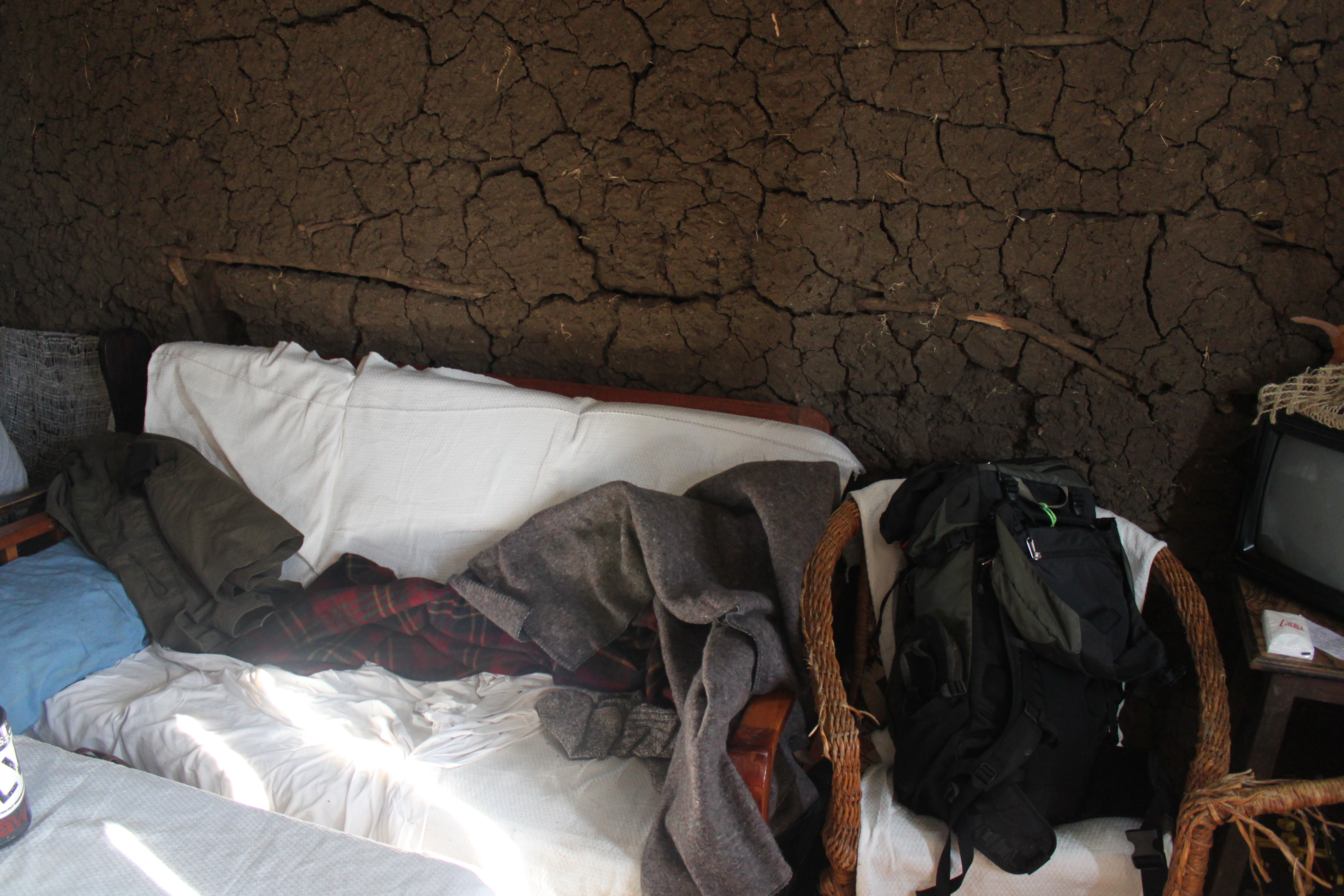 I woke just before 7 to a bright light in my face. The door had been opened to let the chickens go outside and I could see the cracking mud walls and dirt floor.