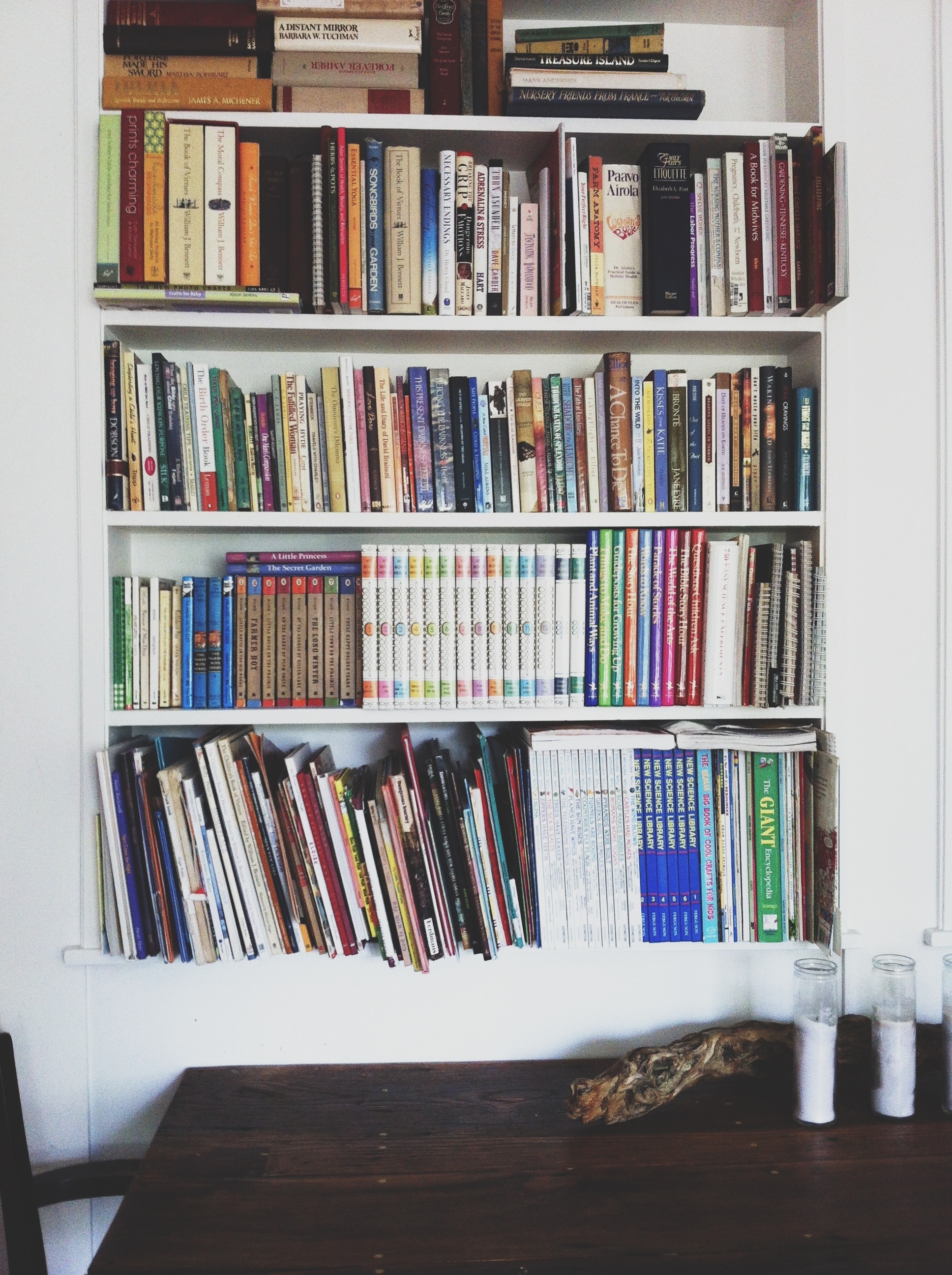 A newly organized bookshelf / work that I love / that precious face I’ve been waking up to (please don’t grow up) / frequent runs with that pup I adore / first fruits of my garden labor / stickygram for sending me my pictures on magnets / another year(7/20) and friends who spoil me endlessly / the sunsets over the river at the end of each day that bring me back around every damn time.