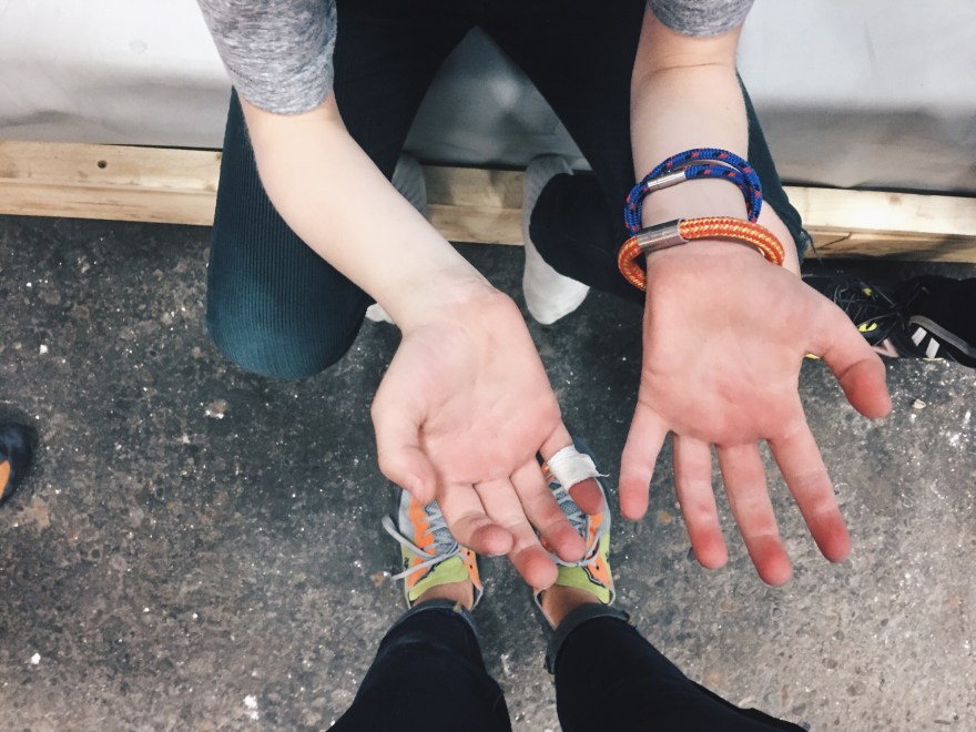 Tristans’ first skin tear at the climbing gym (proud mom).