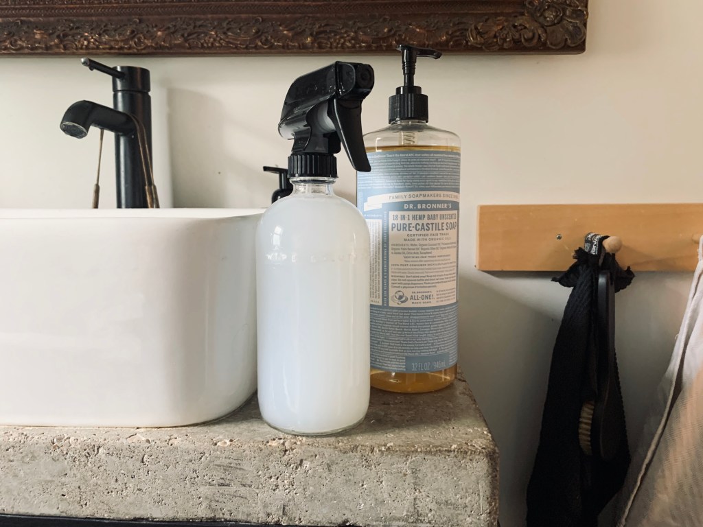 My wipe solution is simply a few squirts of Dr. Bronners castile soap and water in a spray bottle. A lot of recipes you’ll find online will call for oil of some kind and essential oils. A little scent might be nice, but I personally don’t use essential oils – especially on babies. If you enjoy a nice scent, I would recommend getting a scented soap over putting EO on your babies skin. As for using oil, I think it’s fine to do this as long as the solution doesn’t sit too long before being used as the solution could easily develop mold. For the wipe itself, there are so many cheap options: you can buy them (like these) or you can even cut up old receiving blankets, flannel sheets etc. Any soft, absorbent fabric will do. Simply cut up the fabric and serge the edges.