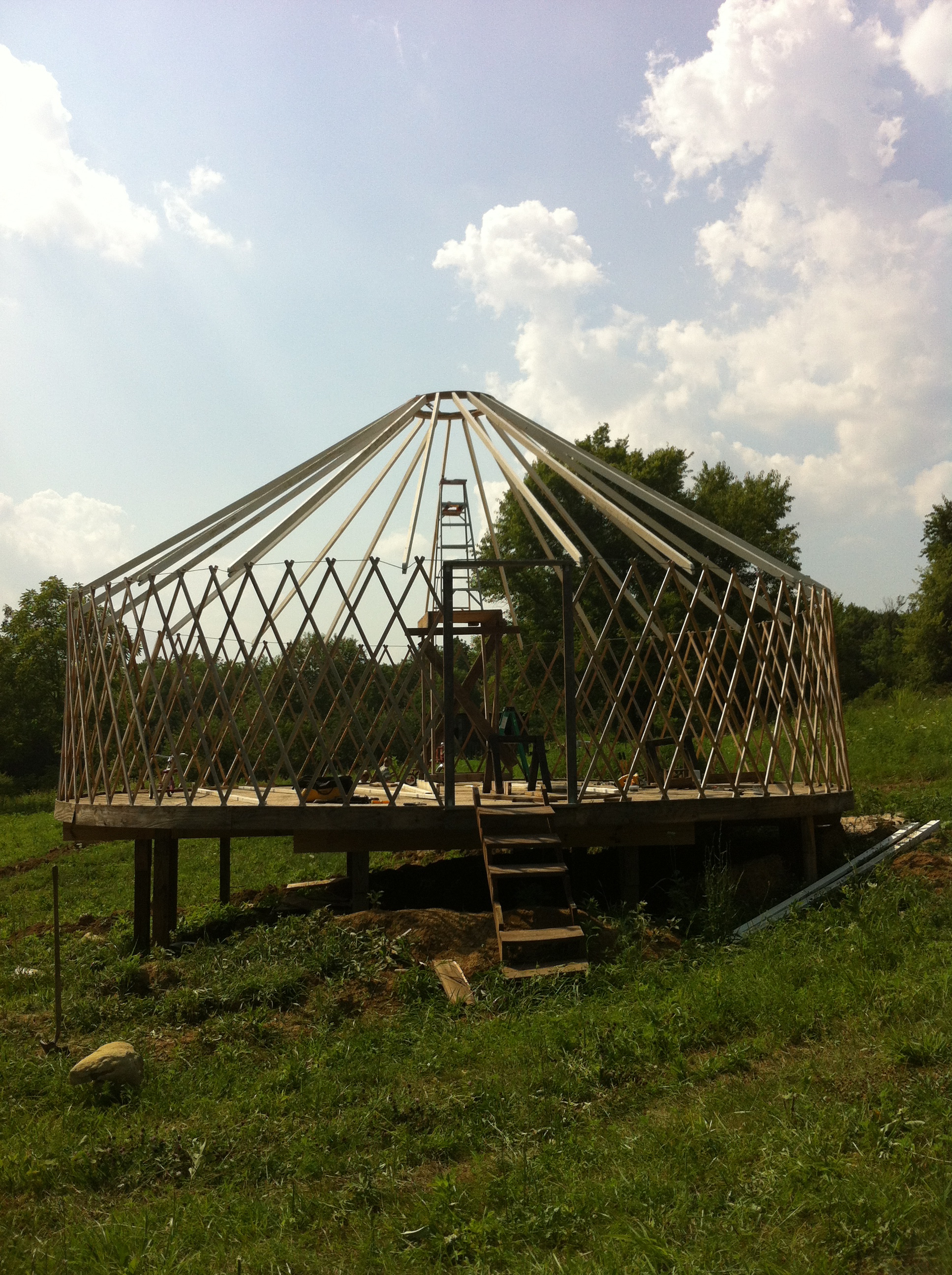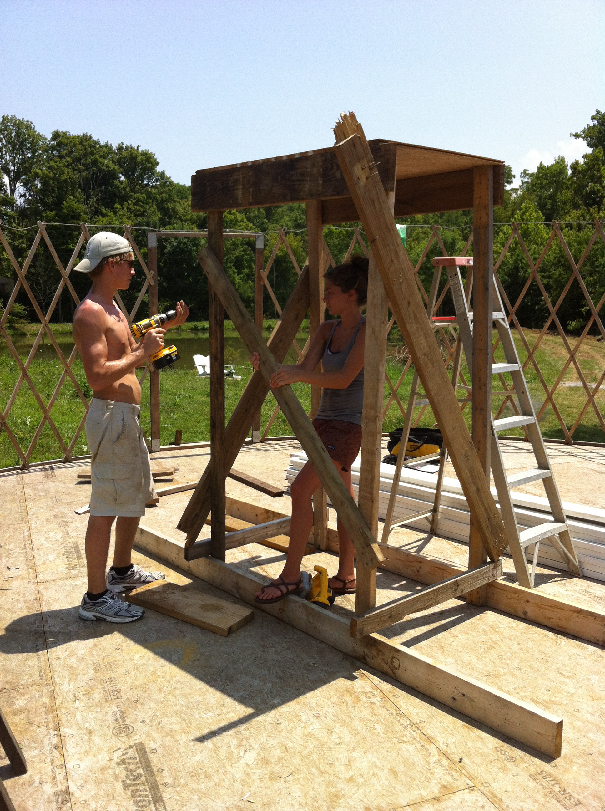 We made tremendous progress today getting the roof rafters in and hooking up the waterline! I can’t describe the sheer joy and relief once these projects were complete after a good 8 hours in the 100 degree weather. I’m so blessed to have a family that will take their vacation day to drive 9 hours and come help me.